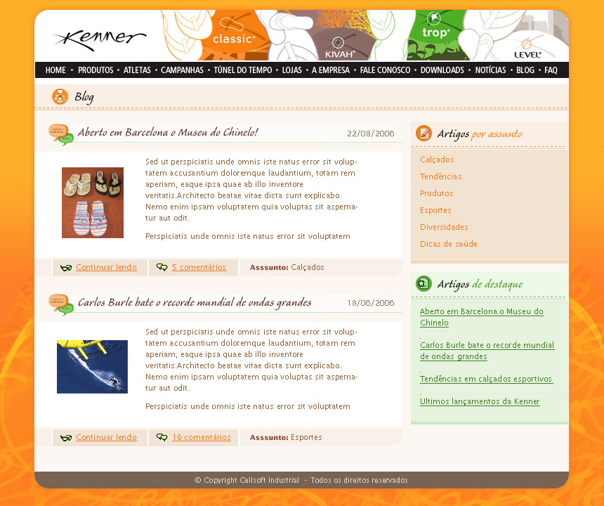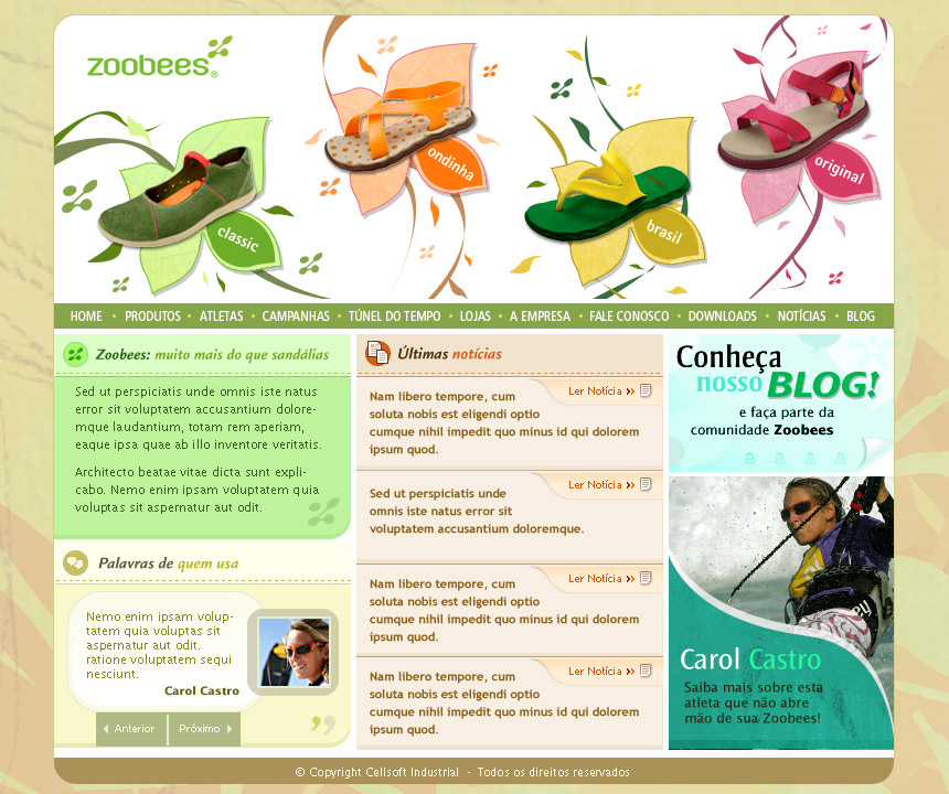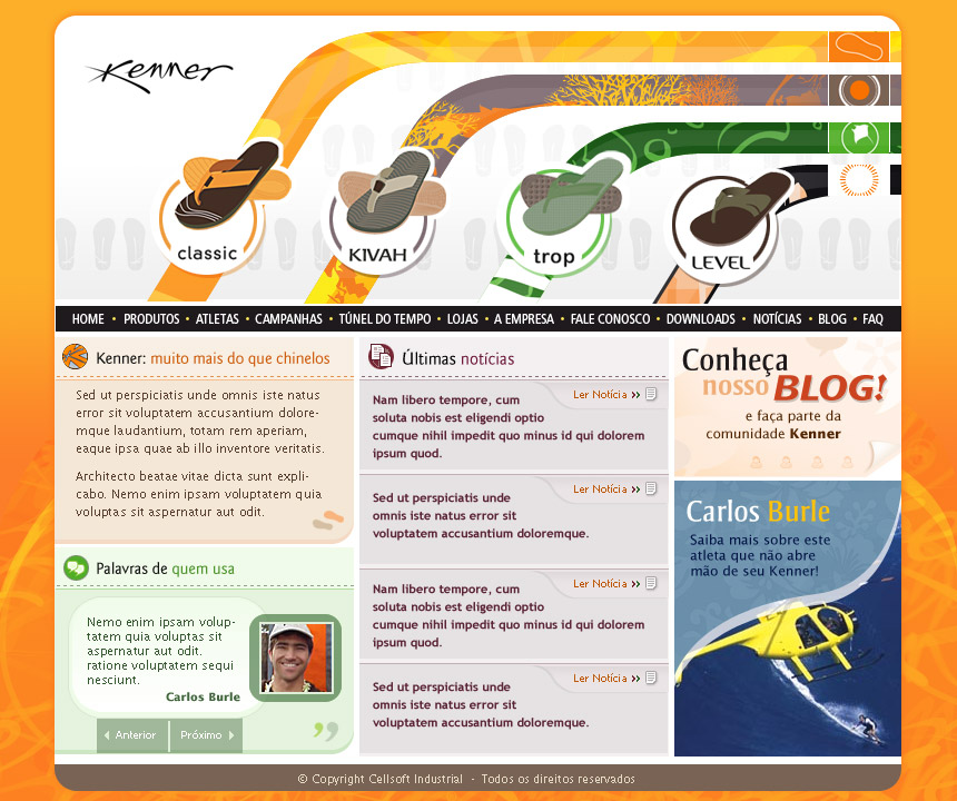 When they hired Midia 3 to design their website, I had an early opportunity in my career to design both the User Experience and the User Interface visuals from scratch. And because Cellsoft's brands appealed to an audience such as surfers and skaters, I was afforded lots of creative freedom to experiment with patterns, textures and colors.